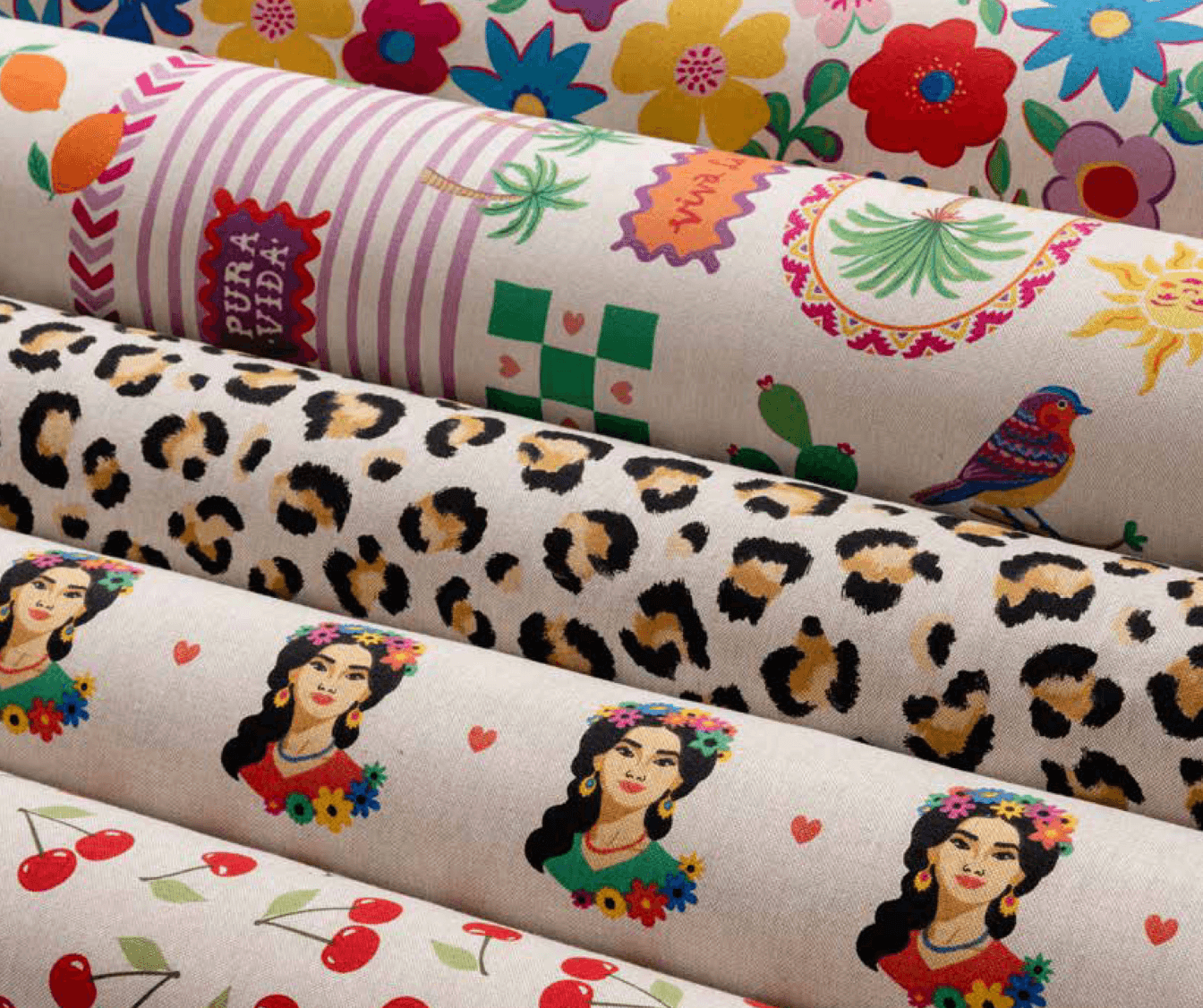 Bestel per halve meter en geef je interieur een vrolijke, tropische touch met deze boho-stof.