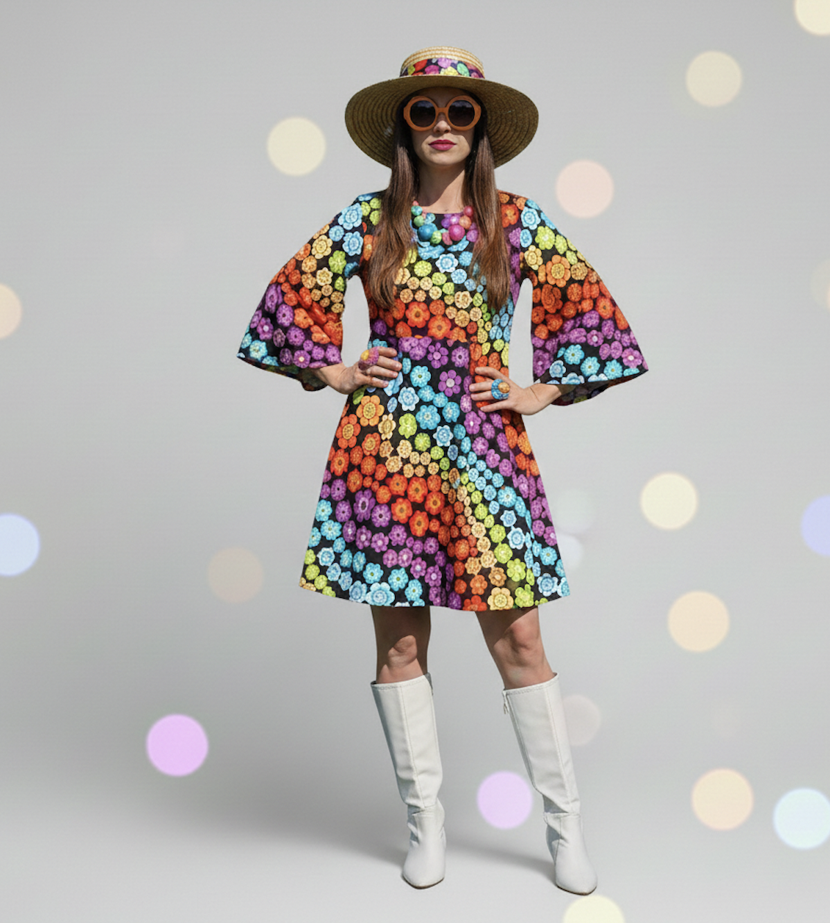Breng kleur en vrolijkheid in je kostuum met deze Flower Power bloemenstof! De felle bloemen in rood, paars, geel, groen en blauw maken elk themafeest of carnavalsoutfit direct feestelijk en opvallend.