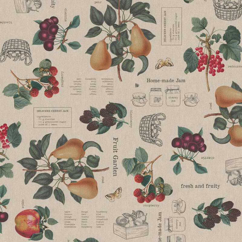 Gebruik ’m voor kussens, bekleding, gordijnen of leuke wandpanelen. De fijne linnenlook geeft diepte aan het kleurrijke fruitmotief en voelt licht én duurzaam aan. Gemaakt van een hoogwaardige mix van katoen en polyester – klaar voor jarenlang fruitig woongenot.